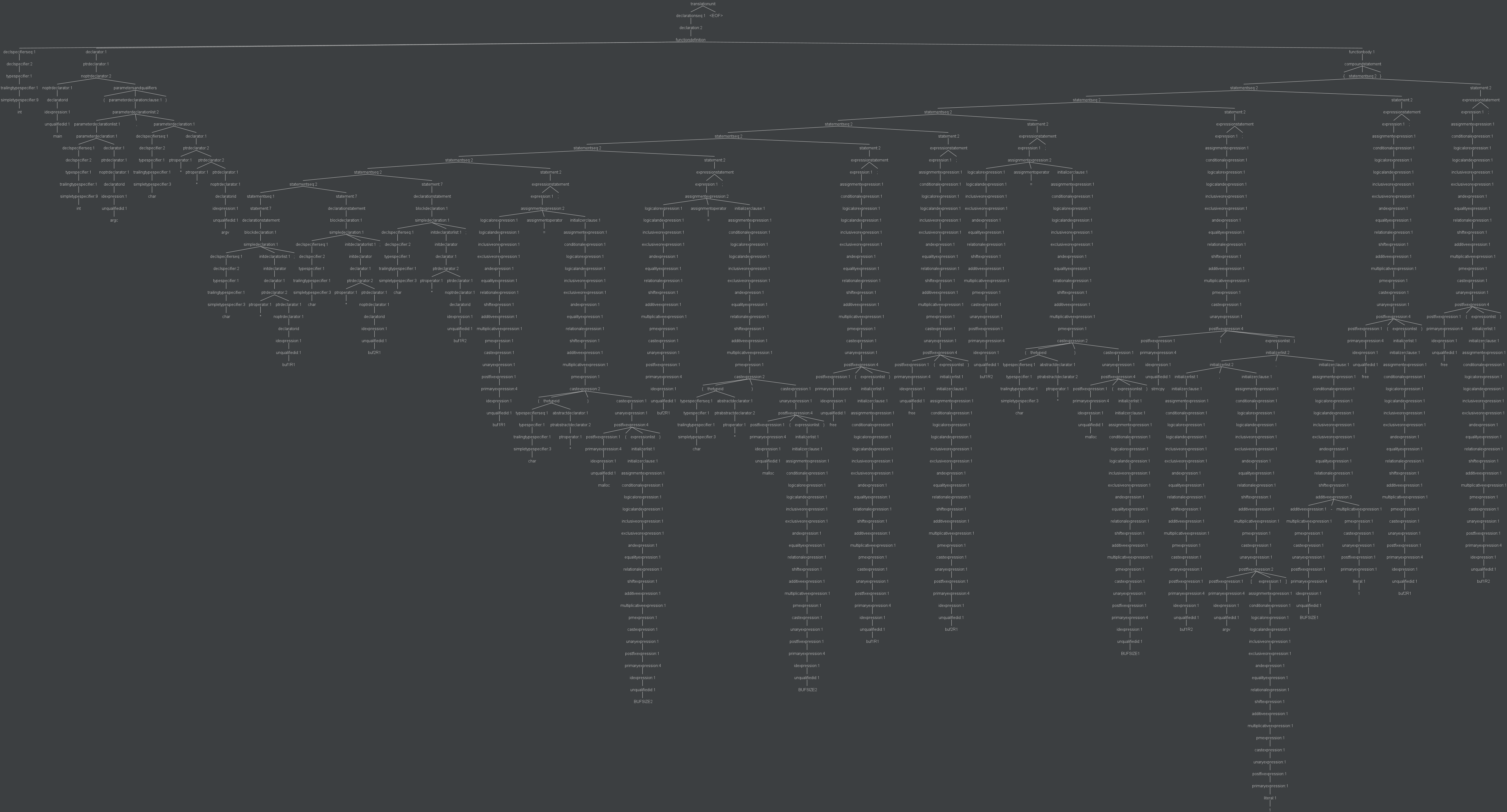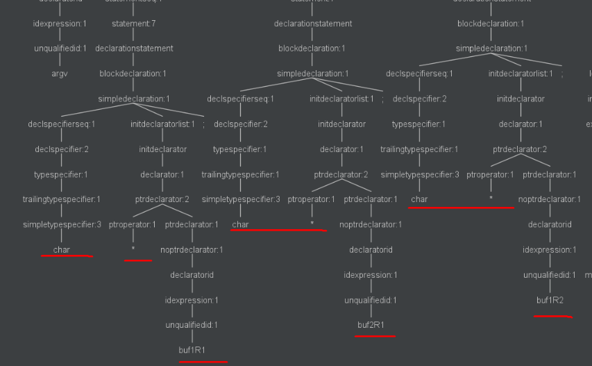 ParseTree 全貌,其中左边的一小撮是函数头定义,右边的一大撮才是函数体定义。