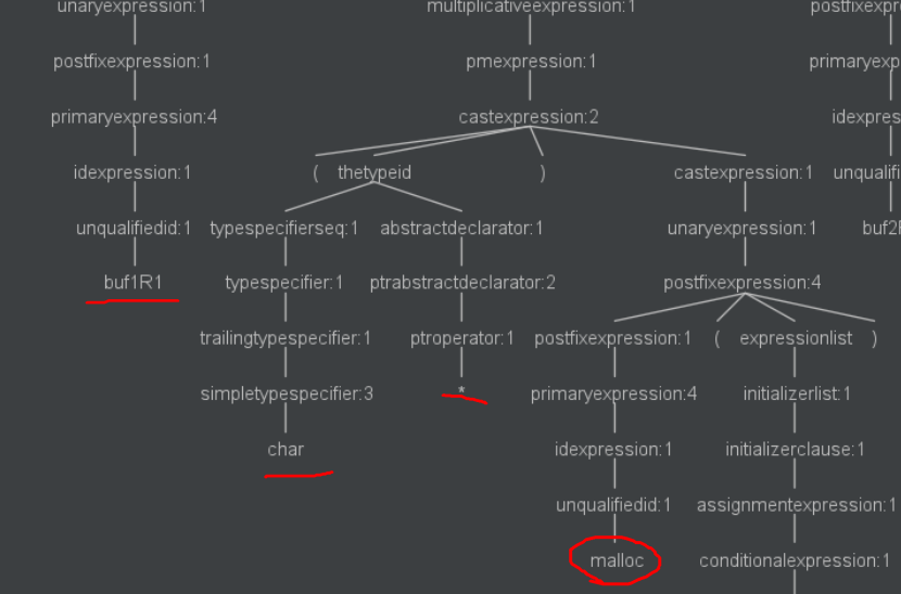 利用 ANTLR4 的 C++ 语言语法规则文件,对漏洞代码进行分析。