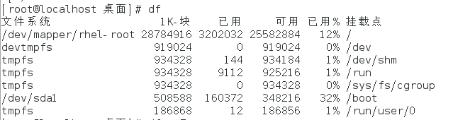 df命令用于显示目前在 Linux 系统上的文件系统的磁盘使用情况统计。