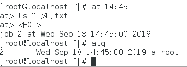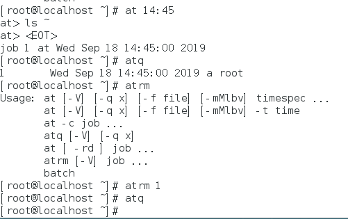 输入at <time>后,进入 at 命令模式,以 ctrl+D 结束任务输入。