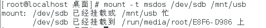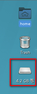 可以看到,它实际上已经挂载到了/run/media/root/设备号文件夹下。桌面上已经有了盘符显示。