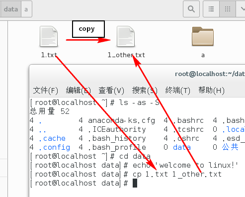 在实验准备之前,先在 data 目录下写一个 1.txt 文件,内容为 "welcome to linux!"。