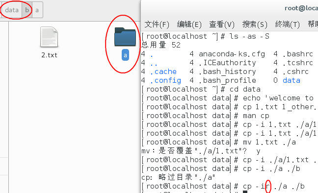实验环境在/root/data文件夹下,文件列表如第一条命令执行结果所示。