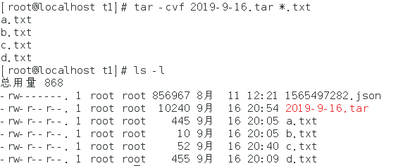 -c创建新的压缩文件-v显示详细的处理信息-f要操作的文件名,这里是所有 txt 文件- 会打包成