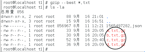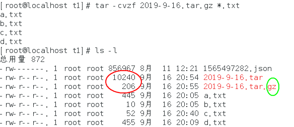 还得调用-z参数!(实际调用了 gzip 程序进行压缩)生成的.tar.gz文件体积果然减小了。