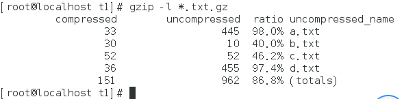 -l查看当前所有gz压缩文件的信息(包括压缩前后大小,压缩比,原文件名)