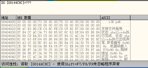 再点击 “执行 Shellcode”,注意程序输出的状态值。