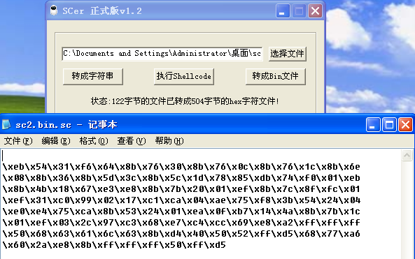 sc2.bin拖入SCer.exe,然后点击 “转成字符串”,即可得到下方所示文件