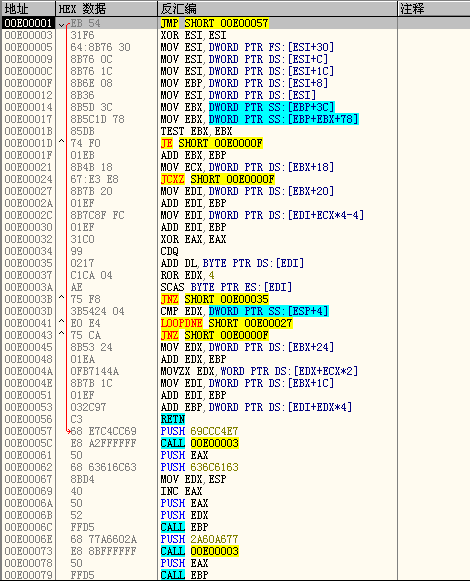 所有的 shellcode 大概就是这样的,下图是全览。接下来将逐步解析。