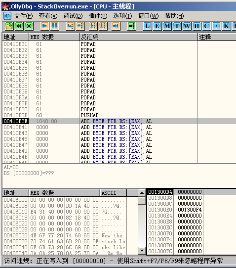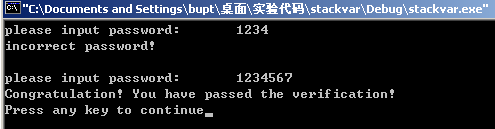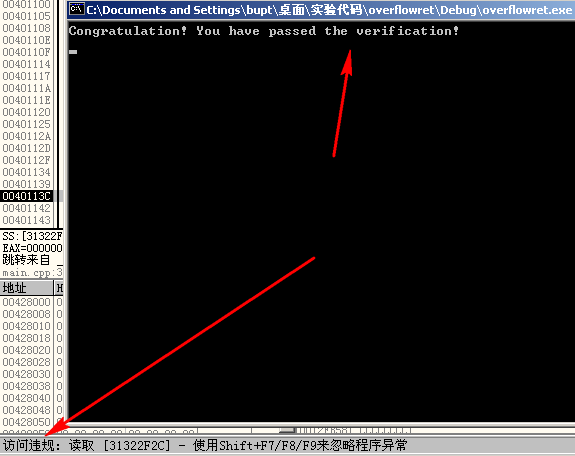 验证缓冲区溢出的发生