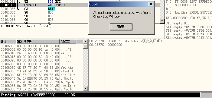 使用 od 自带的插件 overflow return address 寻找可用的