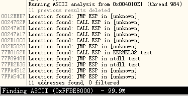 jmp esp地址,查找结果如下![]()