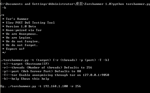 - 用 Tor’s hammer 1.0 工具对第一步搭建的网站发动慢速 HTTP POST 攻击。