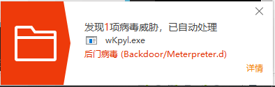 <img src="/2019/11/09/experiments/security/web/webscan/20.png" class="" title="exploit!"> 输入<code>exploit</code>开始利用。观察输出,发现它也是向目标输出了一个<code>exe</code>可执行文件,放入了启动项中。 <img src="/2019/11/09/experiments/security/web/webscan/21.png" class=""> 重启Win Server后,系统弹出了这个MessageBox,证明上述漏洞被有效利用且能成功执行payload程序。 <img src="/2019/11/09/experiments/security/web/webscan/22.png" class=""> - 由于漏洞披露已经有了一段时间,当我拖到宿主机准备分析时,杀毒软件报毒(这说明漏洞库已经收录了漏洞相关信息),其类型为后门病毒。这个可执行文件的部分属性如下。