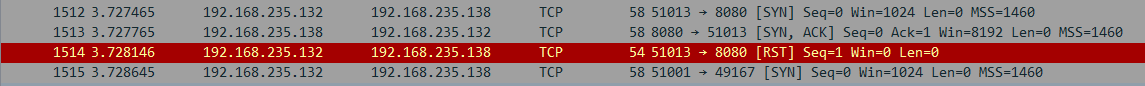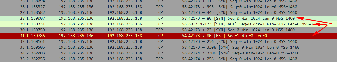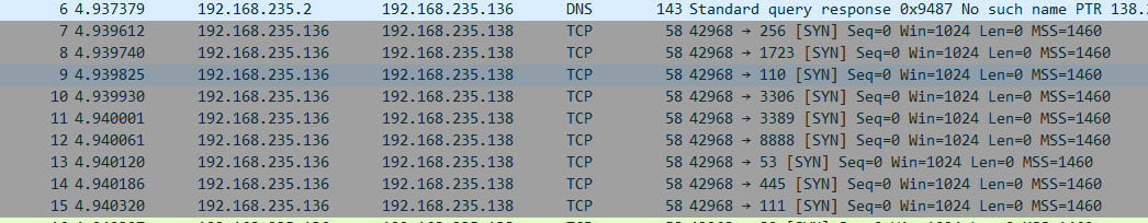 从下图可以看到,这是一个典型的 TCP SYN 扫描,是半开放扫描。