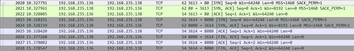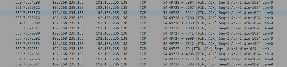 - 但在端口扫描前,maimon 会先发送 FIN + ACK 请求关闭连接,这样做的目的可能是重置状态,减少干扰。