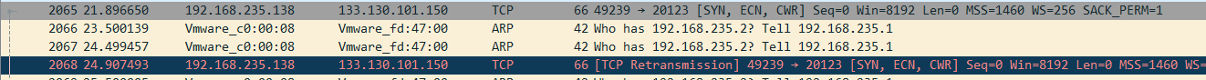 133.130.101.150这个 IP 发送带有 SYN、ECN、CWR 标志的 TCP 包。 -