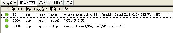 确定目标主机可达后,使用端口扫描技术,发现目标主机的开放端口,包括网络协议和各种应用监听的端口。有开放扫描、隐蔽扫描、半开放扫描三种方式。
