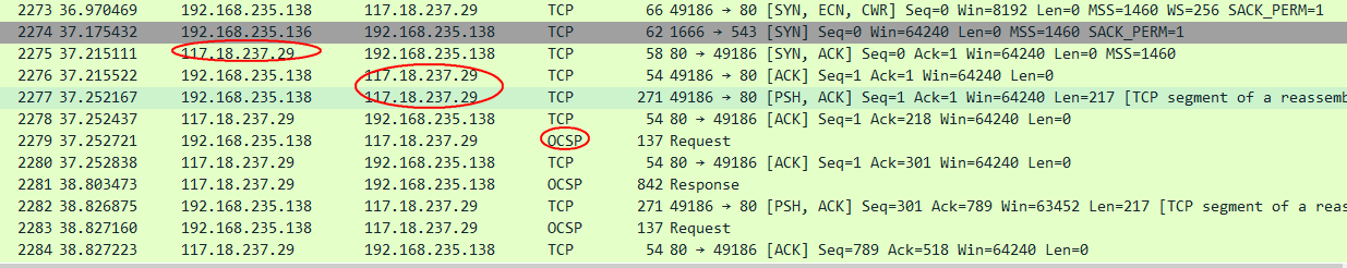 这里应该是在进行操作系统指纹的探查,依据是带有 PSH 标志的 ACK 包,不过负责这里验证的 IP 不再是探测机的 IP!