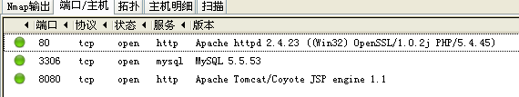 目标机的 80 端口和 8080 端口处于监听状态,是开启的。