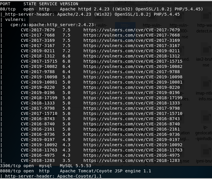 做完 “漏洞扫描” 实验的 metasploit 部分后,我才发现 metasploit 是漏洞利用软件而非漏洞扫描软件。重新上网查找相关资料,发现存在扫描漏洞的 nmap 脚本 nmap-vulners,决定使用这个脚本重新完成本部分实验和分析。