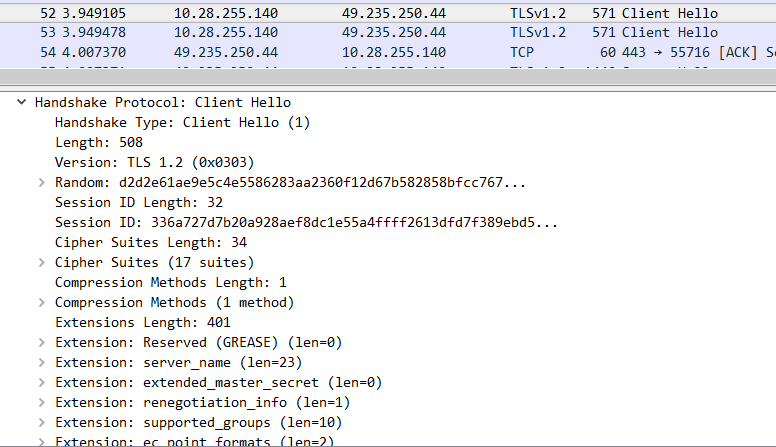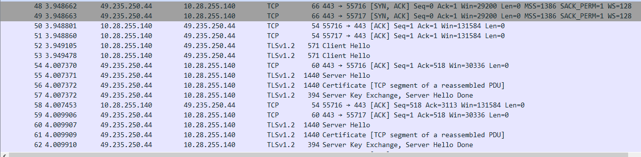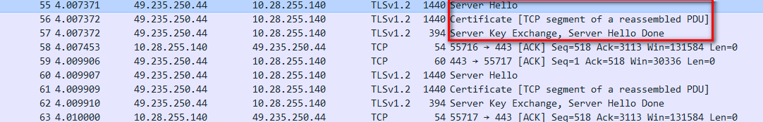 - 可以看到几个 TLSv1.2 标志的包