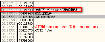 - 上方的第一个地址指向了下一个 SEH 记录: