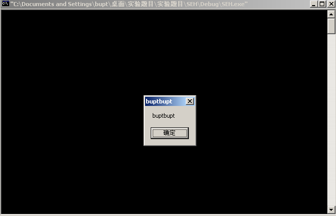 在此实验中,我们定义了一个自定义的错误处理函数MyExceptionHandler(),可以观察到,__try中试图除零,因此引发了一个异常,这个异常将由我们自定义的错误处理函数处理。如果strcpy操作溢出了,并精确地将栈帧中的 SEH 异常处理句柄修改为shellcode的入口地址时,操作系统将会错误地使用 shellcode 去处理除 0 异常,代码植入成功。