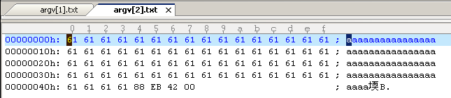 argv[1]被复制到overflow.buf中,起始地址为0x42eb5c。算出其终止地址应为0x42ec20。