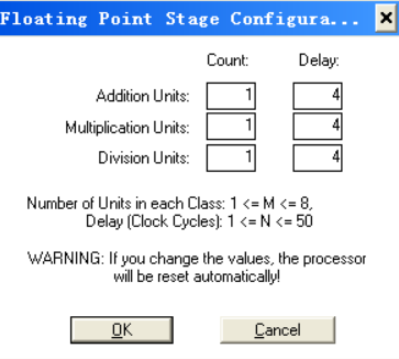 比较各个数据,发现没有变化,无论怎么增加统计结果都一样,由此可见,在该程序中,浮点运算部件的增减对效率没有影响。原因在于,此程序浮点计算指令没有重叠,所以并行度没有增加,性能没有提高。