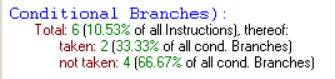 转移指令一共 6 条,成功转移 2 条,不成功转移 4 条。